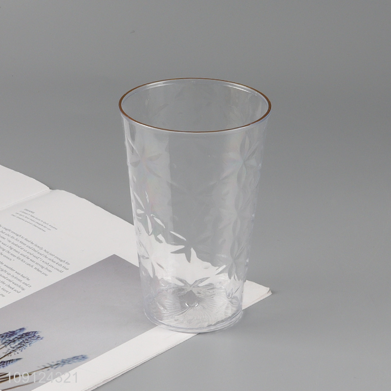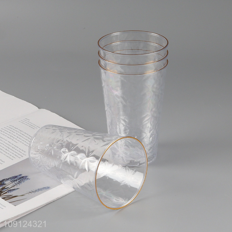 Wholesale 4PCS Gold Rimmed Plastic Water Cups Clear Embossed Plastic Cups