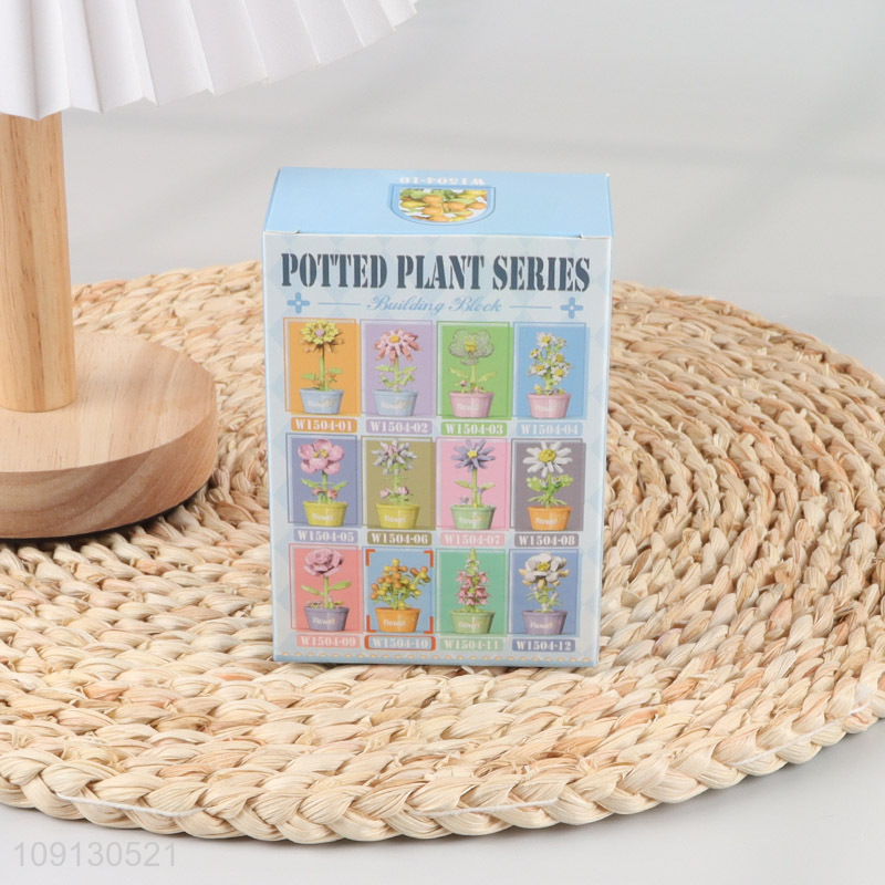 Popular Product Cute Mini Building Blocks Flowers Potted Plant Set