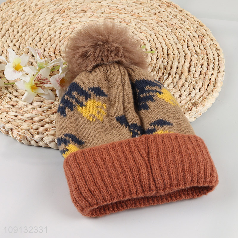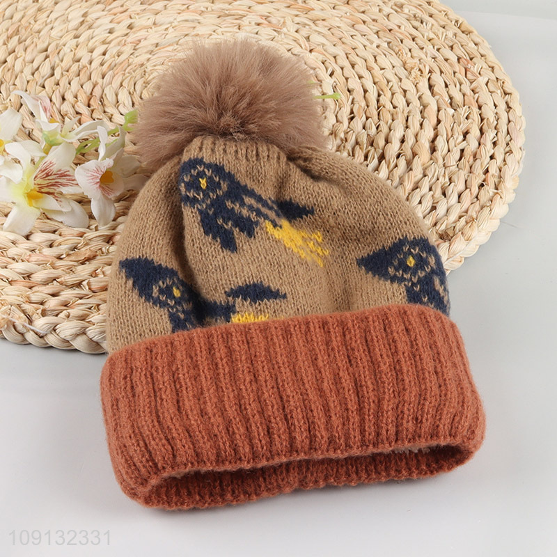 Wholesale Kids Winter Beanie Hat Pom Pom Beanie Hat with Fleece Lining