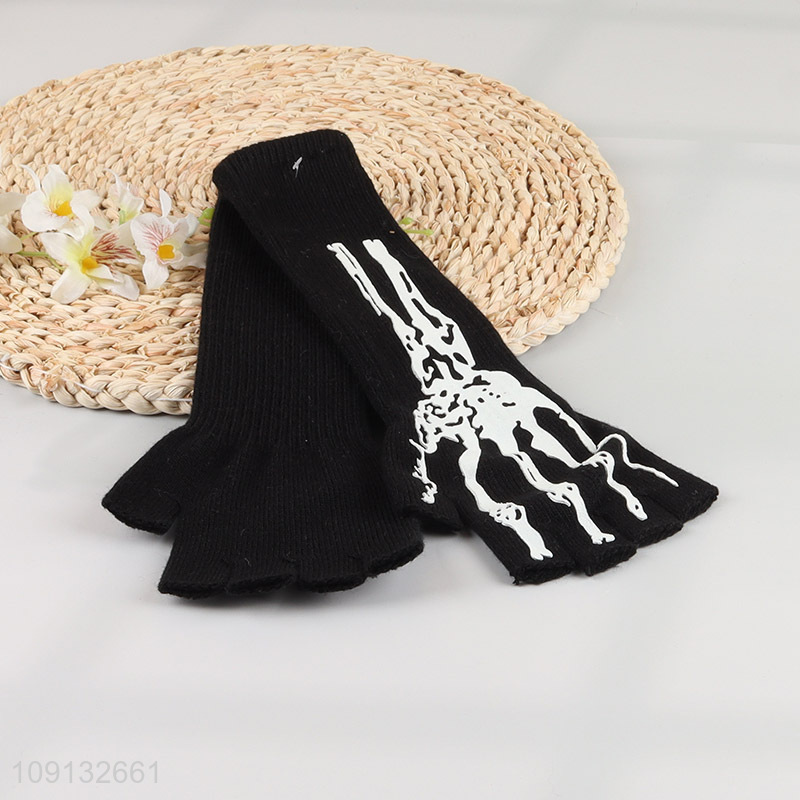 Wholesale Halloween Skeleton Gloves Elastic Knitted Hand Warmer for Men Women