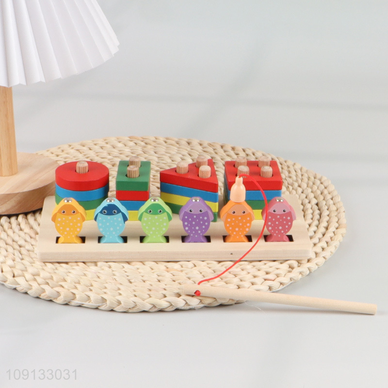 Hot Selling 2-In-1 Wooden Sorting and Stacking Toy Fishing Toy for Kids