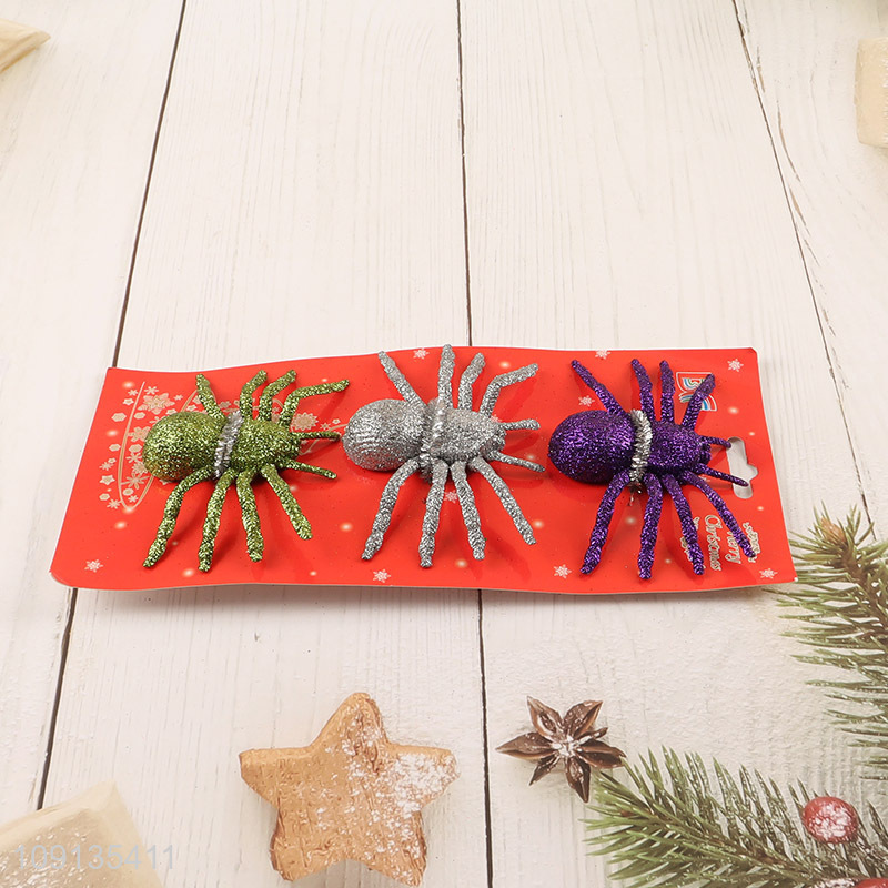 Good Quality 3 Pieces Glitter Plastic Spiders Halloween Decoration Diy Crafting