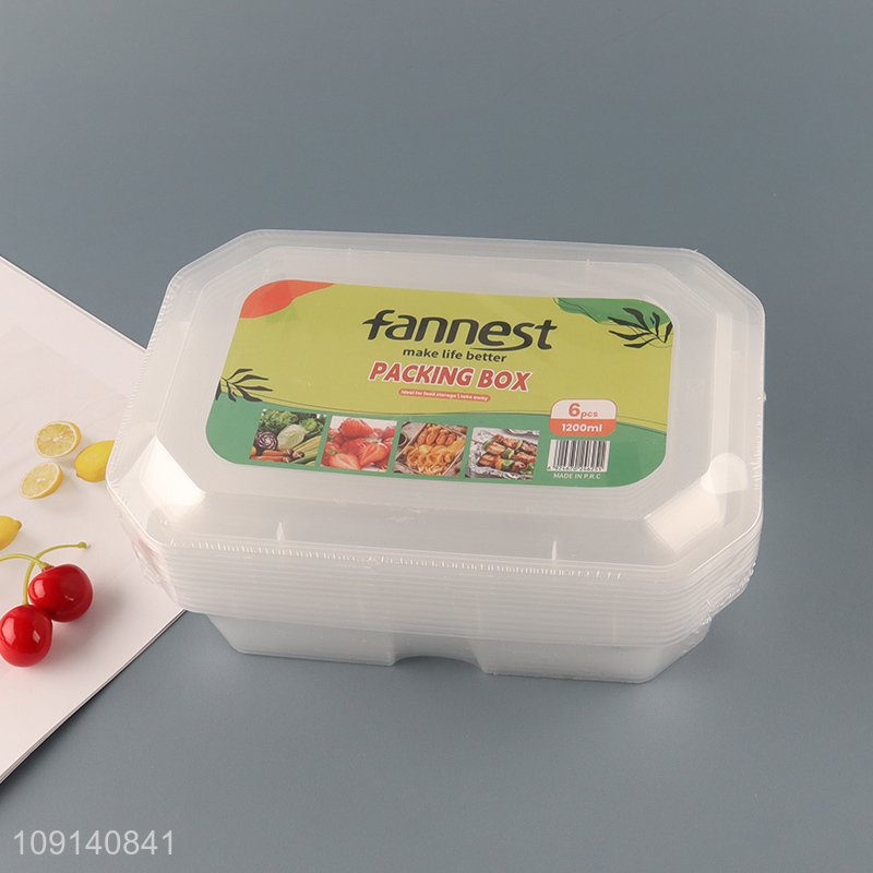 Good Quality 6 Pieces 1200ml Plastic Takeout Containers To Go Food Containers