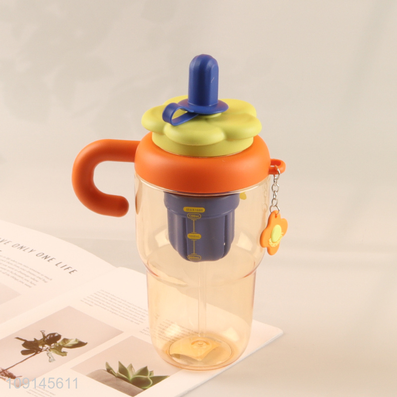 Top products cartoon plastic straw water bottle drinking bottle with handle