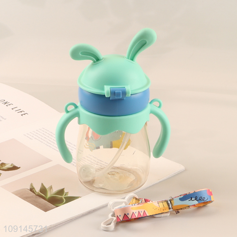 Best selling portable cartoon children straw cup water bottle with handle