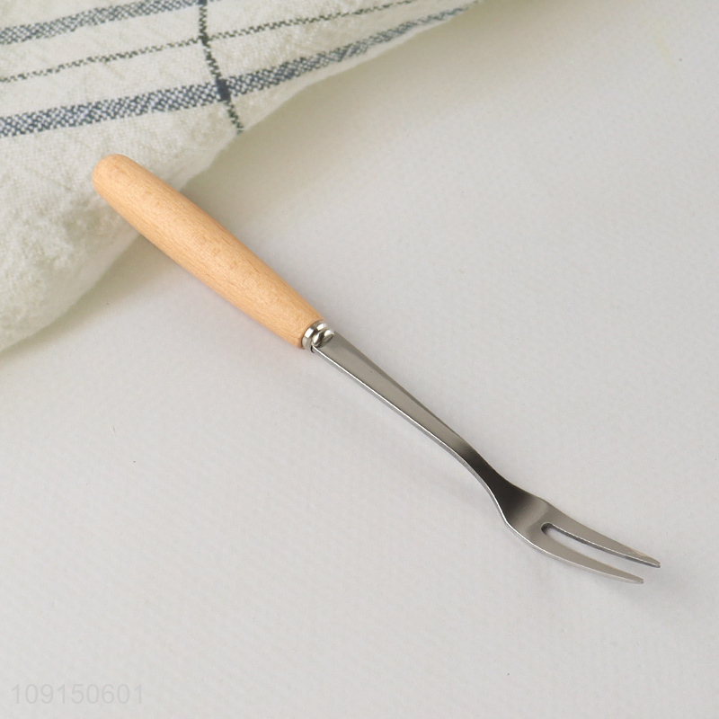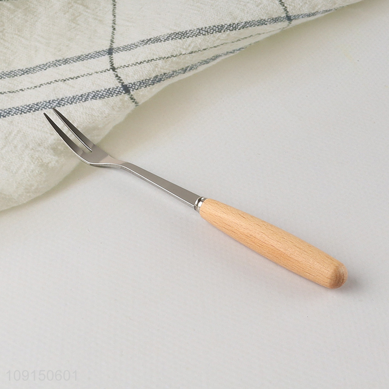 Factory Supply Wooden Handle Stainless Steel Corktail Forks Appetizer Forks