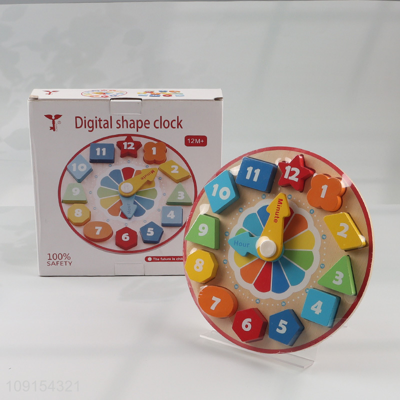 China products wooden children early education toy digital shape clock toy