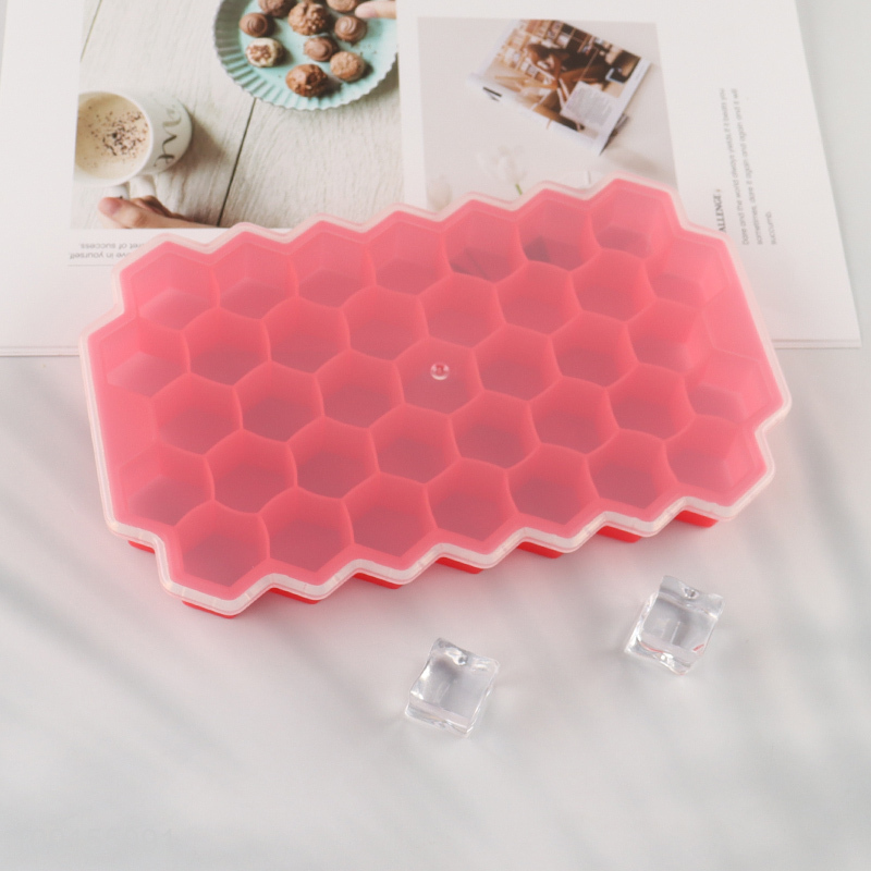 Hot Sale 37-Cavity Silicone Honeycomb Ice Cube Tray with Lid for Freezer