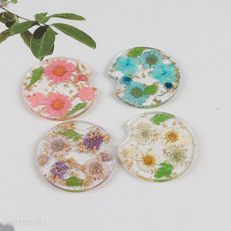 New Product Dried Flower Car Cup Holder Coasters Resin Cup Coasters