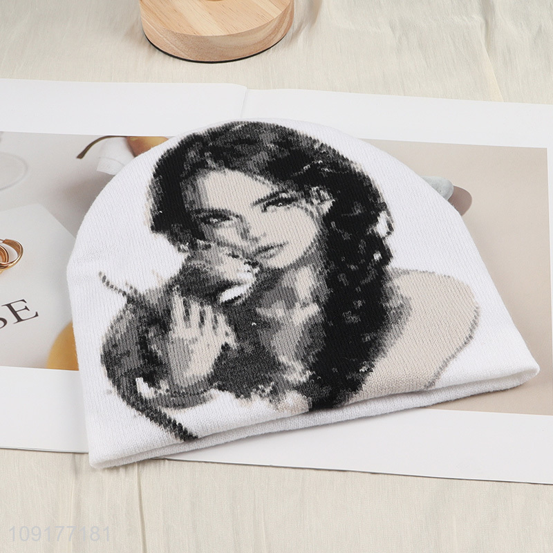 New Arrival Women Winter Beanie Hat Jacquard Knit Slouchy Beanie Cap