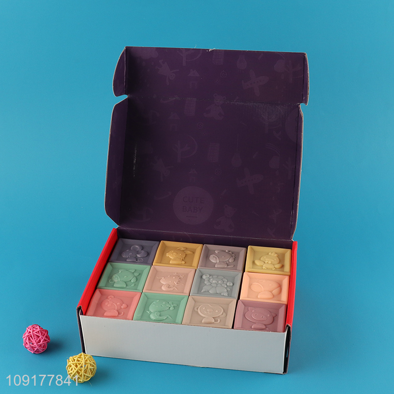 Top sale 12pcs soft blocks baby squeeze stacking bath toys