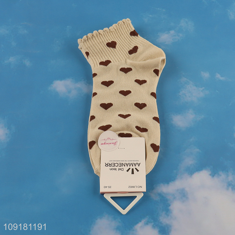 Top selling heart printed ankle socks ruffle socks for girls