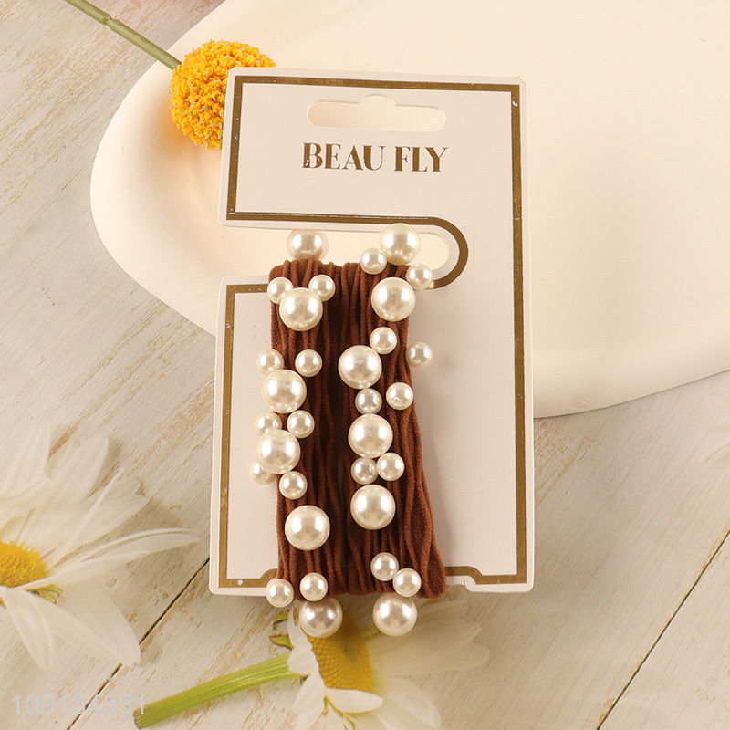 Factory direct sale multicolor elastic hairband hair accessories with pearl