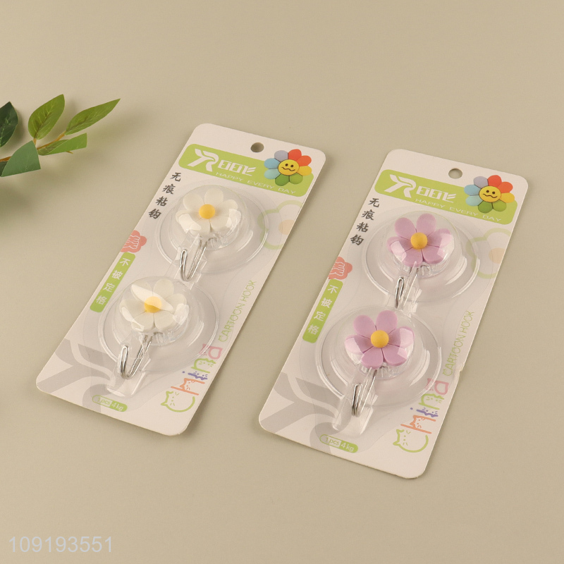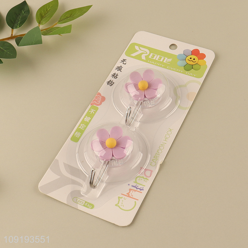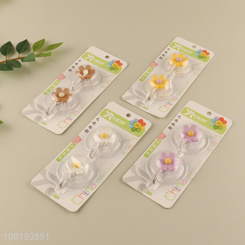New Arrival 2PCS Cute Flower Adhesive Hooks Heavy Duty Adhesive Hooks