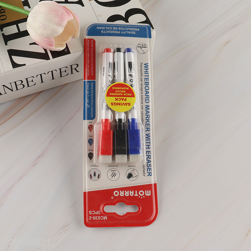 New Arrival 3 Pieces Low Odor Dry Erase Whiteboard Marker with Eraser