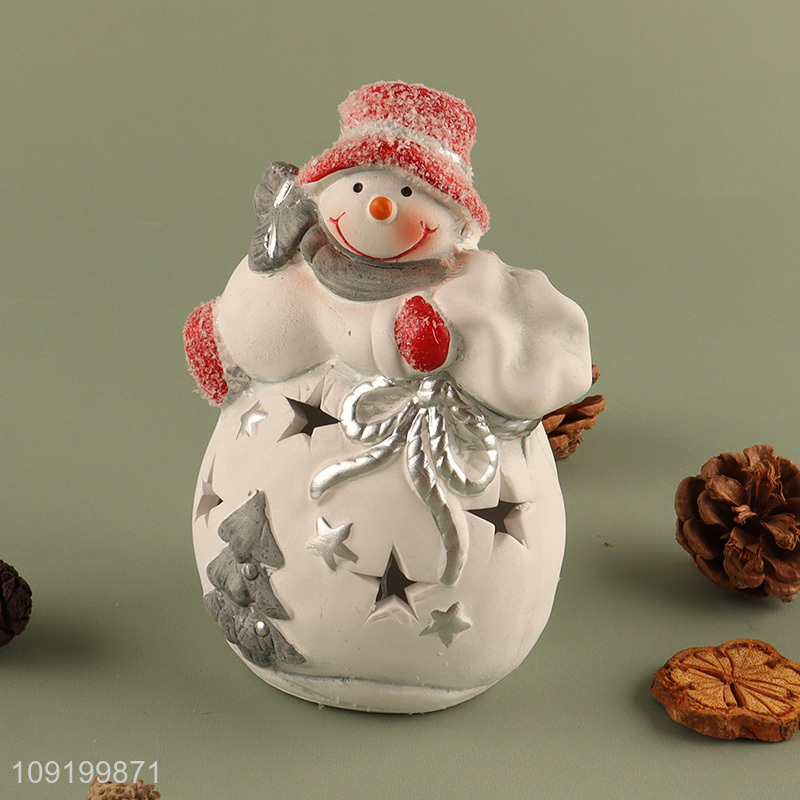 New Poduct Led Christmas Snowman Ornaments Ceramic Snowman Figurines