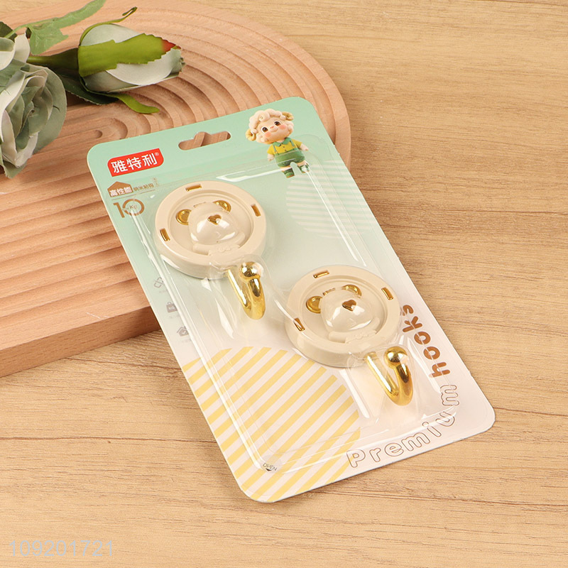 Top sale 2pcs round bear shape bathroom kitchen sticky hook wall hook
