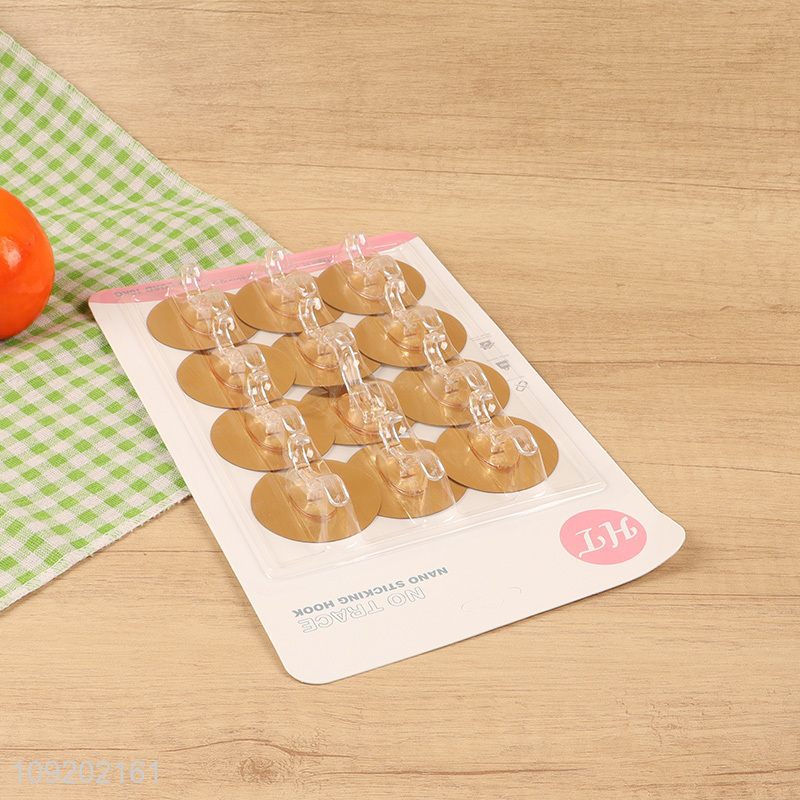 Yiwu market 12pcs golden round sticky hook adhesive hook for kitchen