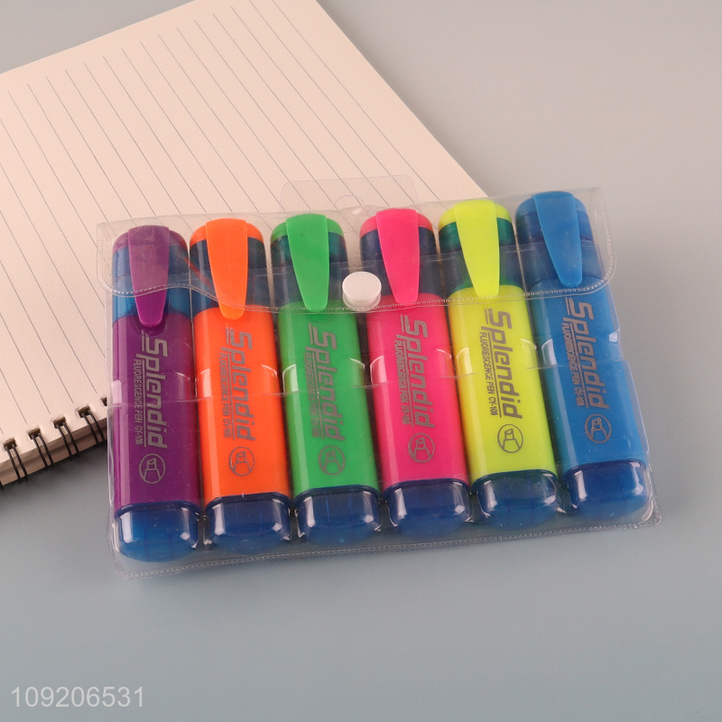 Factory Supply 6 Colors Chisel Tip Highliter Markers for School Students