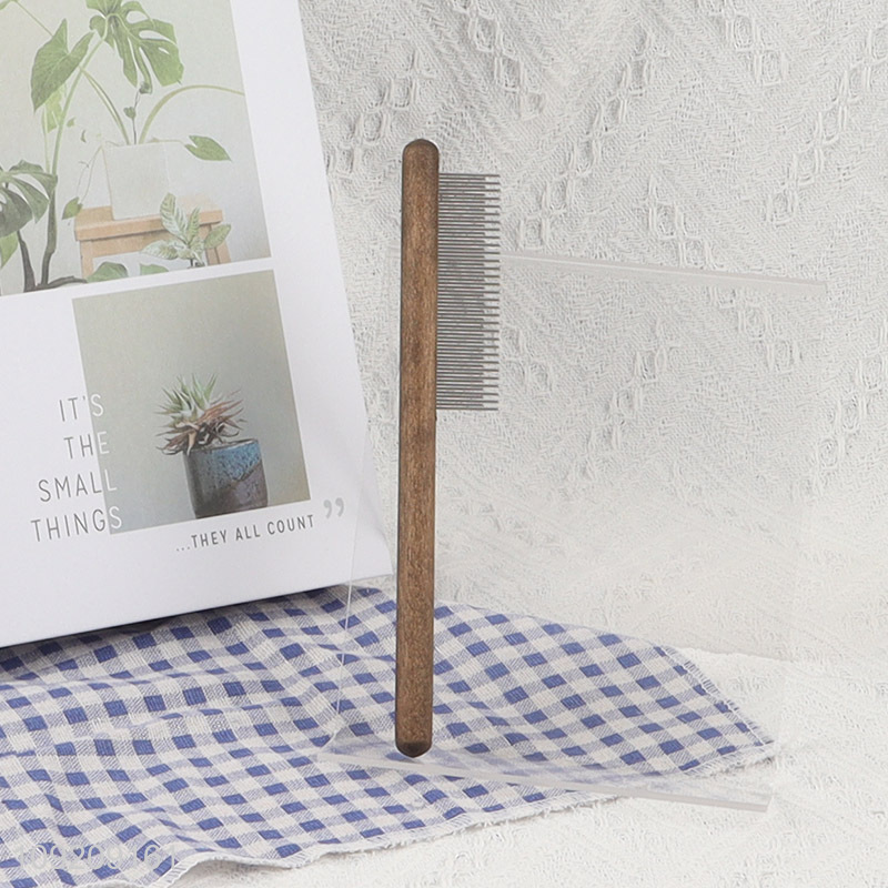 Online wholesale professional pet grooming tool pet hair comb with wooden handle