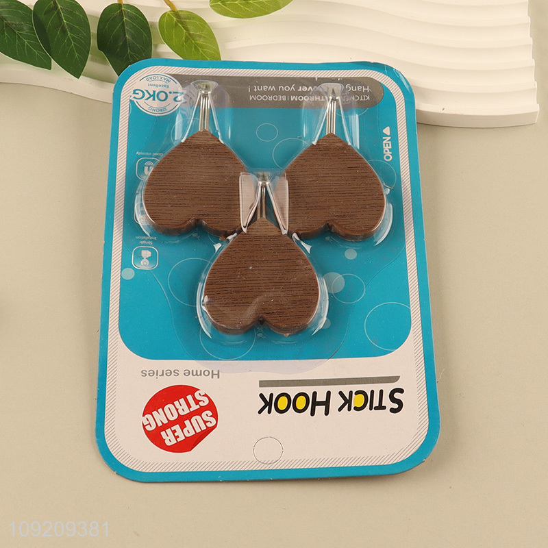 Wholesale 3 Pack Wood Grain Plastic Wall Hooks Adhesive Coat Hooks