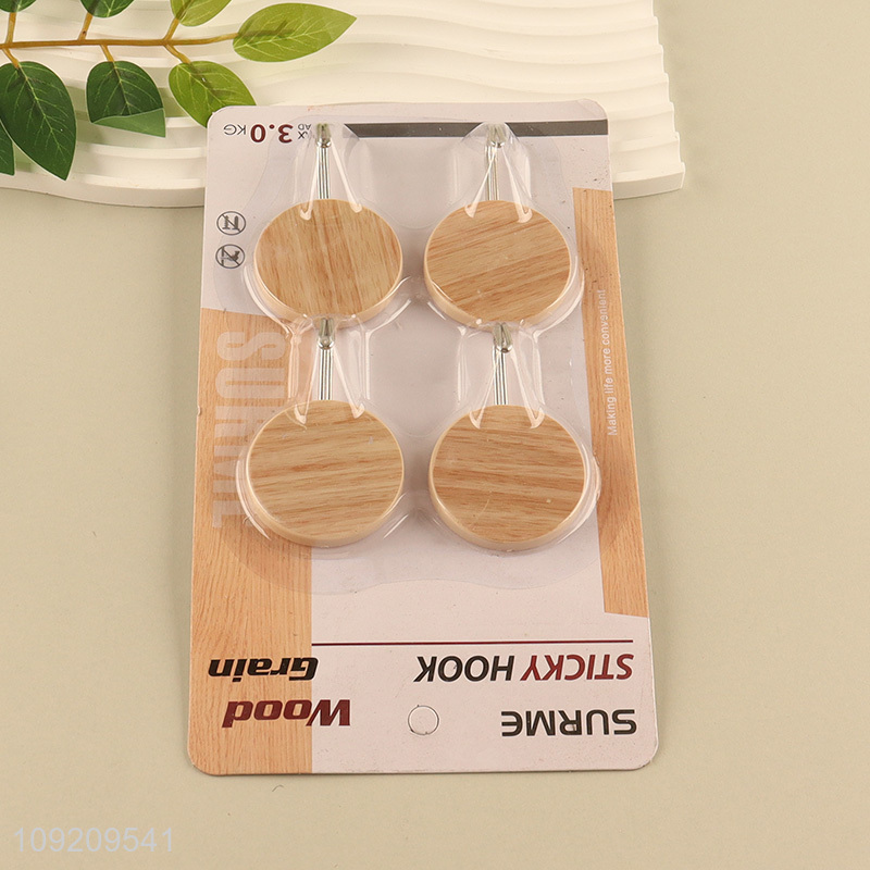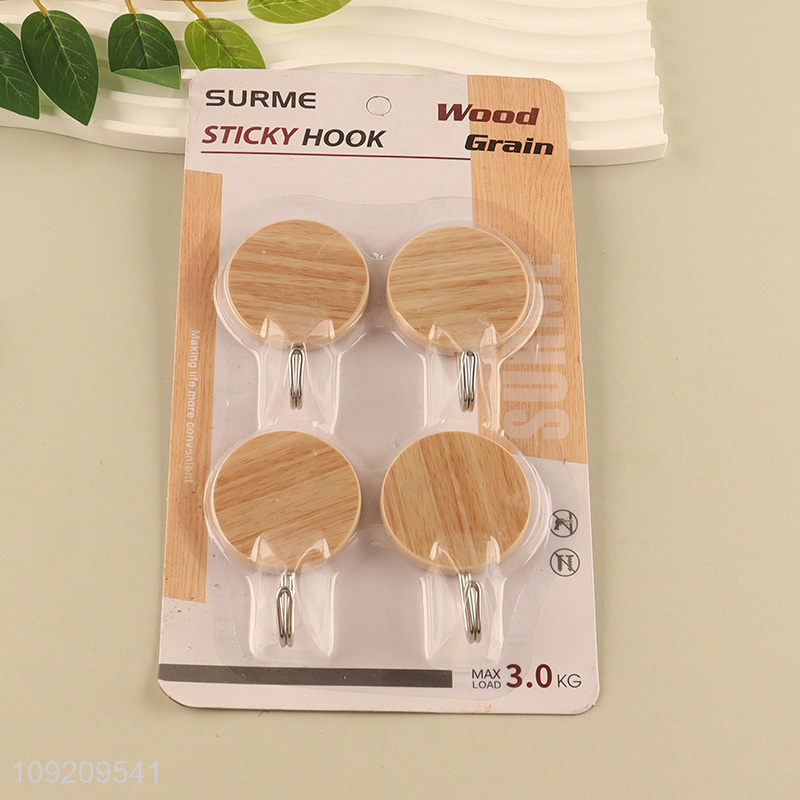 Popular Product 4 Pack Wood Grain Adhesive Wall Hooks for Bathroom