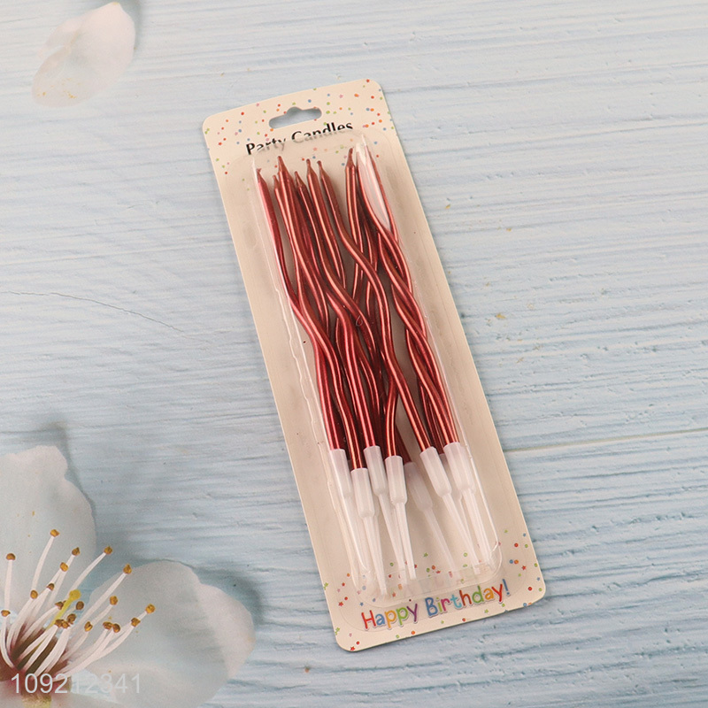 High Quality 12-Count Twisted Long Thin Cake Candles Metallic Cake Candles