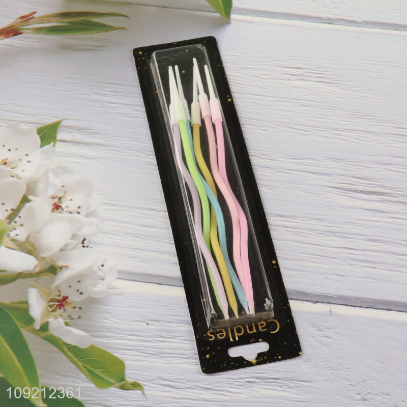 China Imports 6-Count Colorful Twisted Long Thin Cake Candles for Birthday