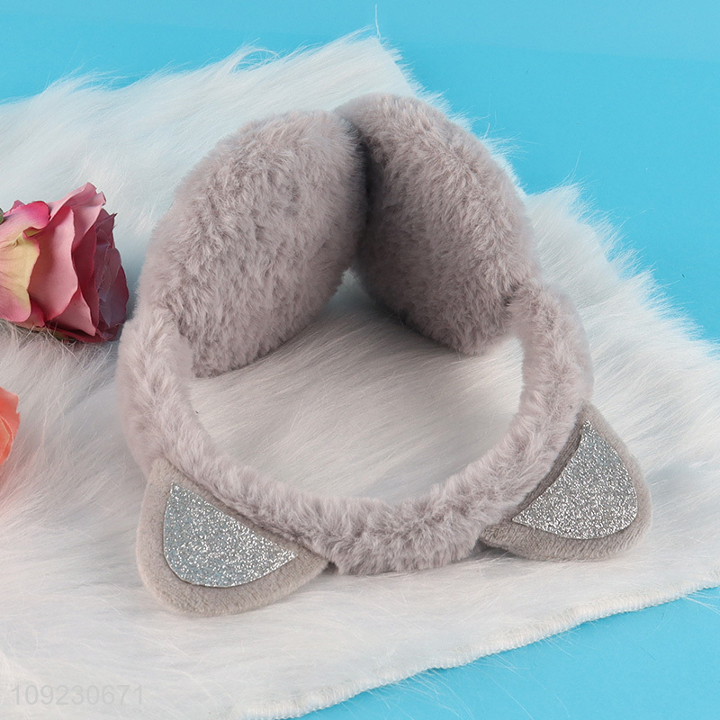 Low price grey cat ear shape winter plush polyester earmuffs