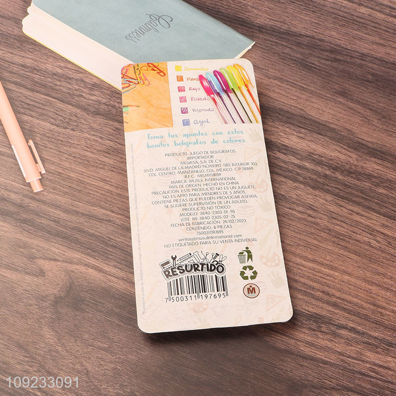 Hot Selling 6 Packs Colored Gel Ink Pens for Writing Coloring Journaling