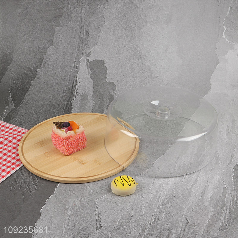 Wholesale Round Bamboo Cake Tray Dessert Stand with Plastic Cover