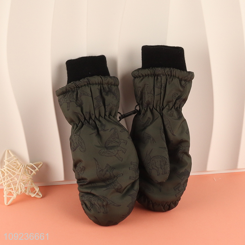 Top quality dinosaur printed winter warm polyester gloves for sale