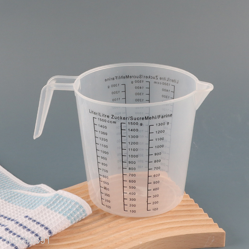 New arrival kitchen tool 1500ml plastic measuring cup with handle