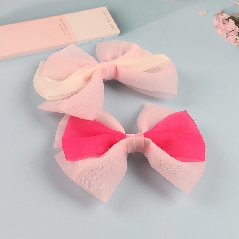 Factory Price Gauze Bowknot Hair Clips Non-Slip Hair Clip for Women