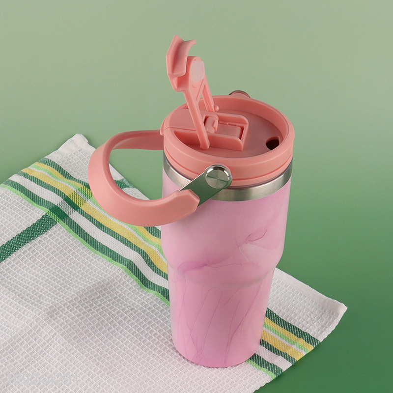Factory Price 600ml Stainless Steel Insulated Tumbler Travel Mug with Handle & Straw