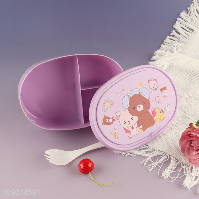 China Imports 3-Compartment Plastic Kids Bento Lunch Box with Spork
