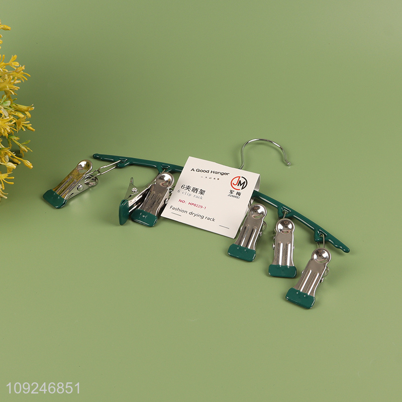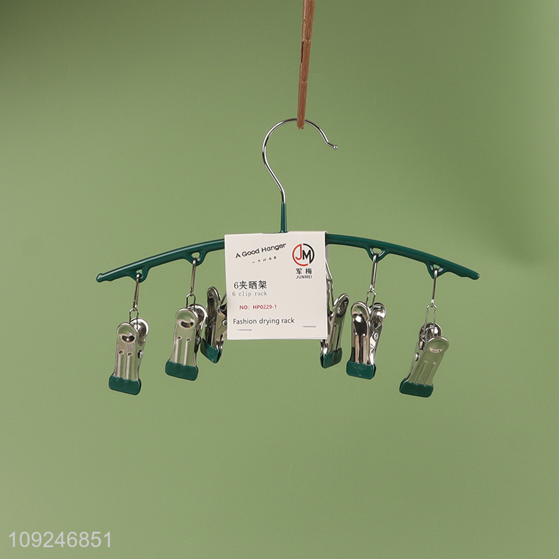 Popular products household windproof clothes hanger socks drying rack with 6clips