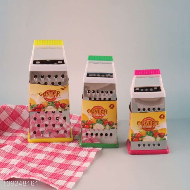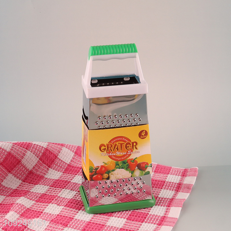 China Imports Cheese Grater Stainless Iron 4 Sides Cheese Box Grater with Handle