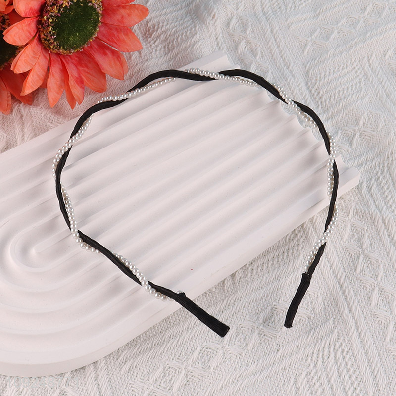 New Arrival Thin Pearl Headband Fashion Elegant Hairband Handmade Hair Hoop