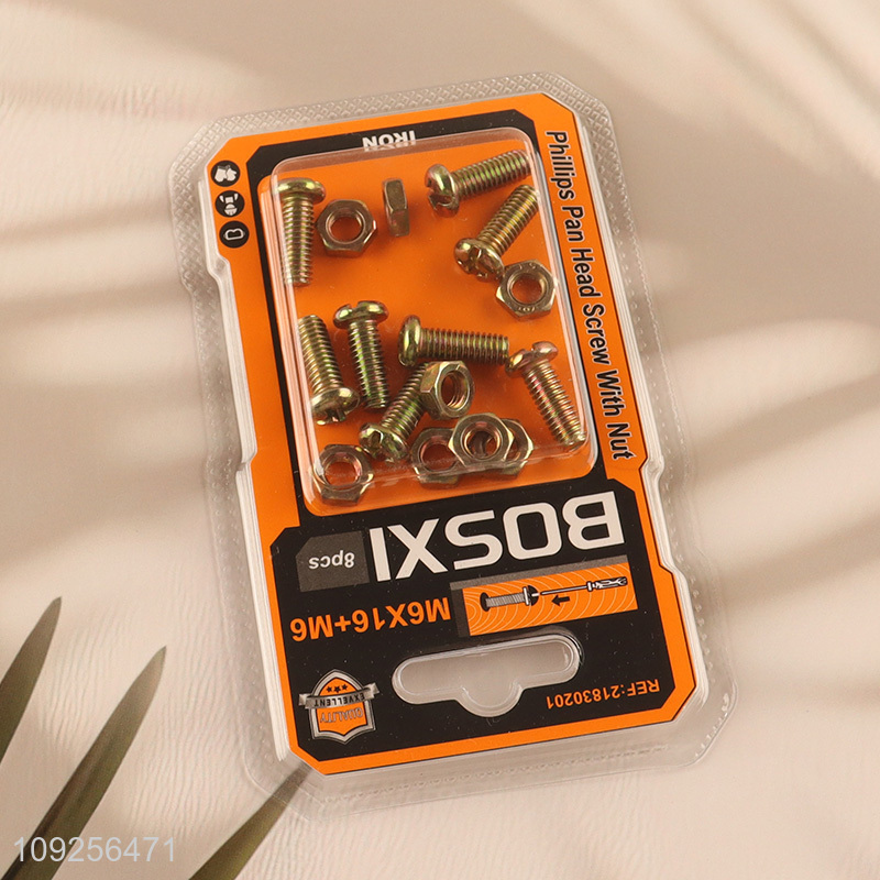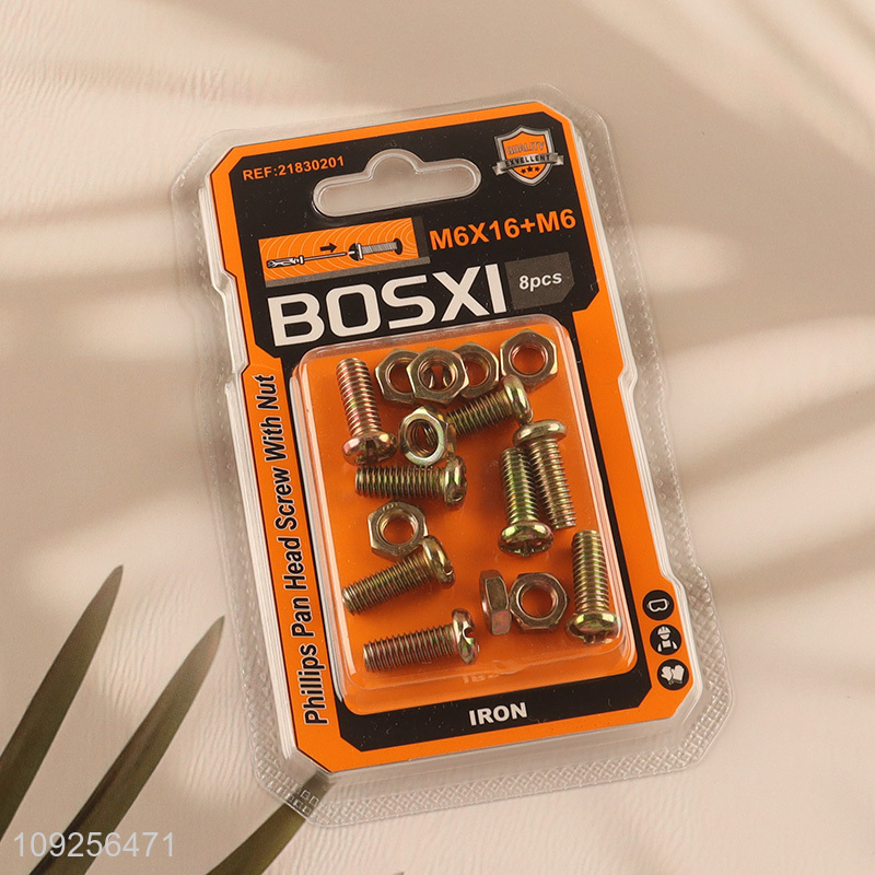 New Product 8Set M6 Screw and Nut Set Iron Screws and Nuts Set Fastener Kit