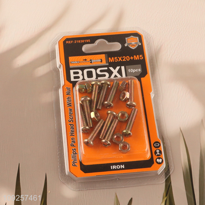 New Product 10Set M5 Screw and Nut Set Iron Screws and Nuts Set Fastener Kit