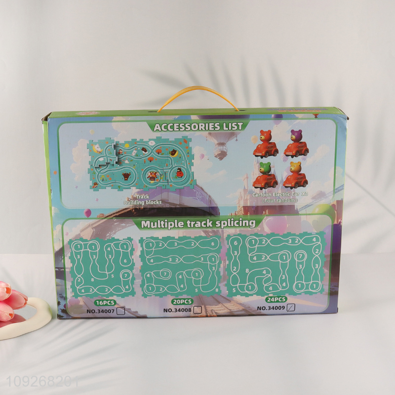 Yiwu market cartoon children puzzle game electric rail car toys for sale